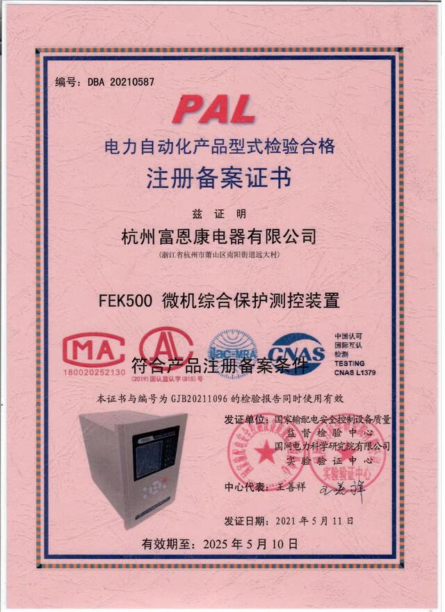 2008年,公司注册了自己的品牌---FEK(富恩康)。主要生产有:FEK19、FEK18系列智能电力仪表;FEK3000后台监控软件系统;FEK-SK、FEK-WK凝露、温湿度监控仪;EKL1、EKL2、EKL3、EKL4系列短路接地故障指示器;FEK-HK-1、FEK-HK-2、FEK-HK-3系列开关柜智能操控装置;LM300H、LM310H、LM510H系列智能电动机?;て鳎籇DS13521、DTS13521系列导轨式电能表;FEK501、FEK601系列微机?;げ饪刈爸玫认盗胁贰9惴河τ糜诘缌?、冶金、石化、国防、水利等行业。
