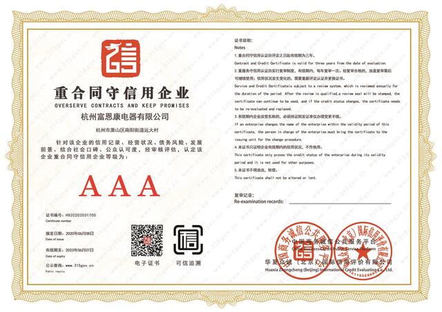 公司多年以来一直坚持“以市场为导向,以质量求生存”的工厂方针和“诚实守信,用户至上的经营理念”。秉持“关爱员工、尽心客户、认真做事、追求卓越”的企业信念,我们将精益求精、开拓进取,力争用心完善适合您的产品。让“富恩康”成为您所放心的品牌;让“杭州富恩康电器有限公司”成为您所信赖的合作伙伴!